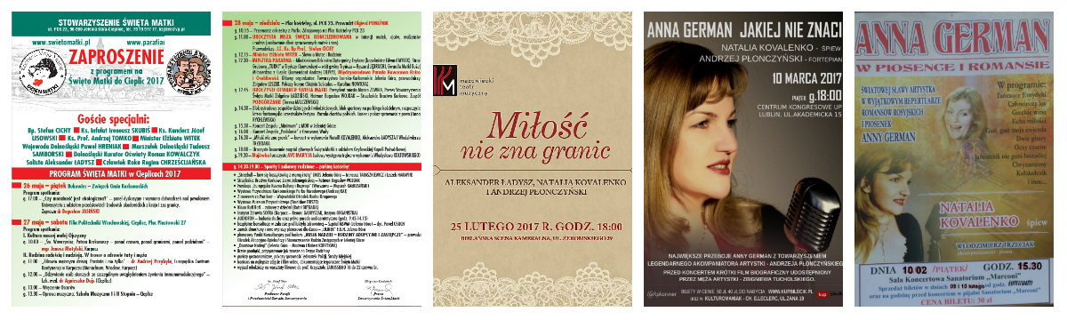 - Koncerty w towarzyszeniu znanych osobistości polskiej jak i światowej estrady